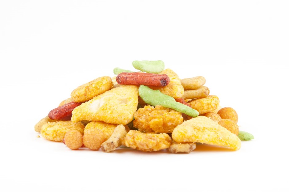 Een mix van pikante rijstcrackers. Voor de liefhebbers van een pittige snack!