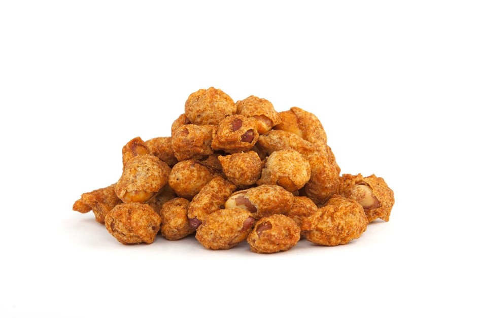 Gebakken pinda's voorzien van een krokant laagje met chili en sambal.