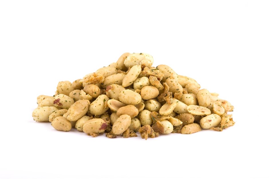 Lekkere gekruide pinda's met geroosterde uitjes, knoflook en zout.